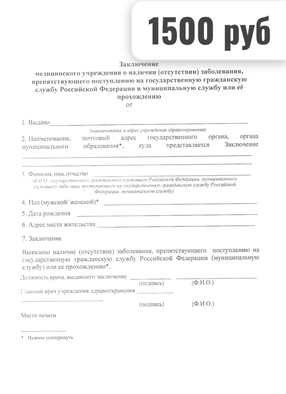 После этого нужно заверить бланк печатями, подписями, штампом. В государственной поликлинике такой документ будут готовить долго, а вакантное место нужно успеть занять. Поэтому мы предлагаем сразу обратиться к профессионалам. У нас вы сможете купить справку 001-ГС/у всего за несколько часов и предоставить ее работодателю.